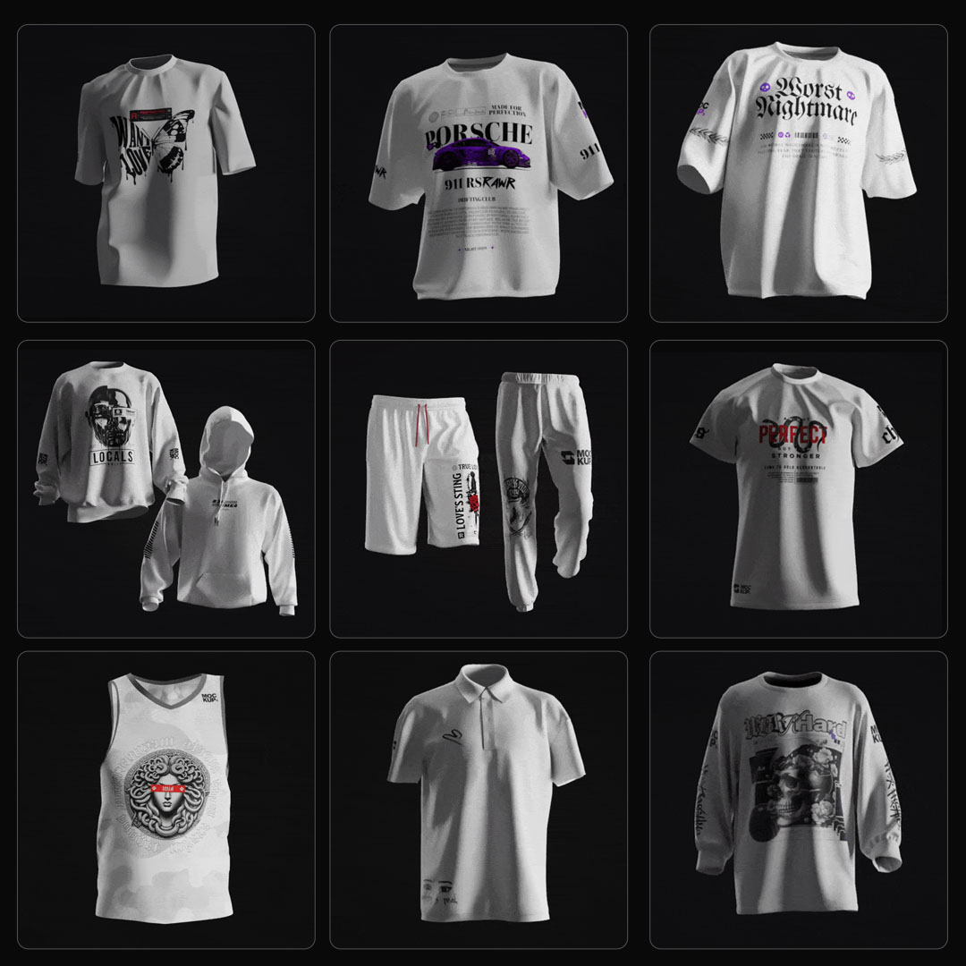 ⚡️ Dê vida à sua marca com o pacote completo de mockups 3D realistas, todos com animação, movimento e personalização total. Ideal pra apresentar coleções inteiras com um visual que chama atenção de verdade.